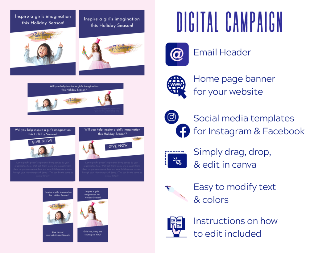 Design Templates to use for a print and multi-digital-channel fundraising campaign!